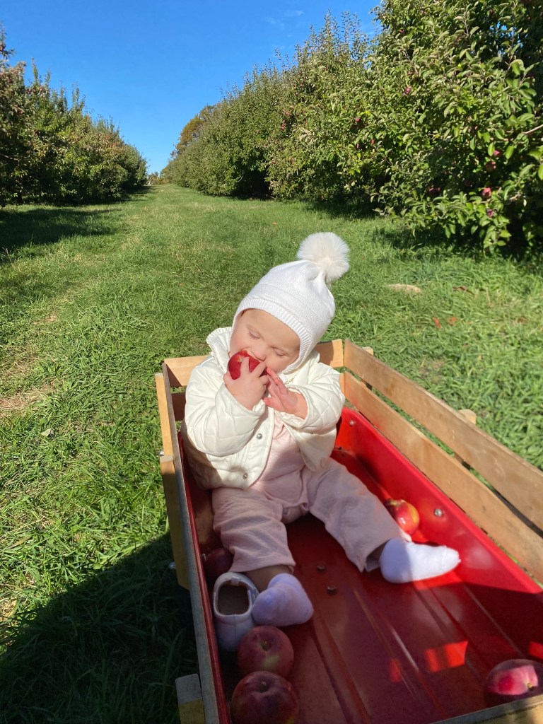 We pulled our daughter through the orchard in a wagon while our son ran around picking apples. It ended up being one of those simple family moments that perfectly captured fall in New England.